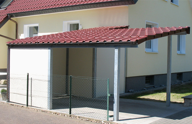 Vordach Stahl verzinkt und weiß beschichtet, Glaseindeckung