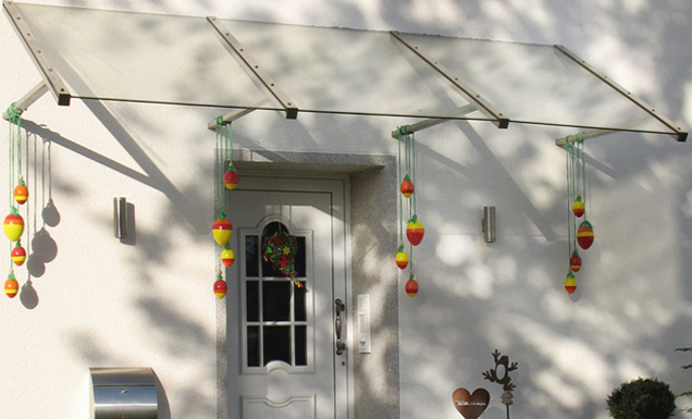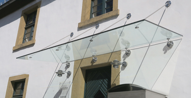 Haustürdach aus Glas, Aufhängung Edelstahl