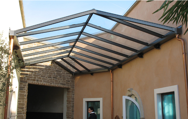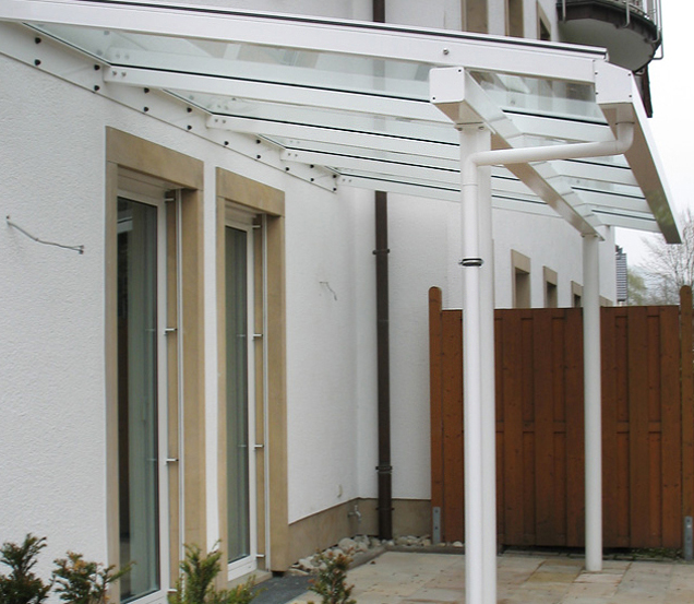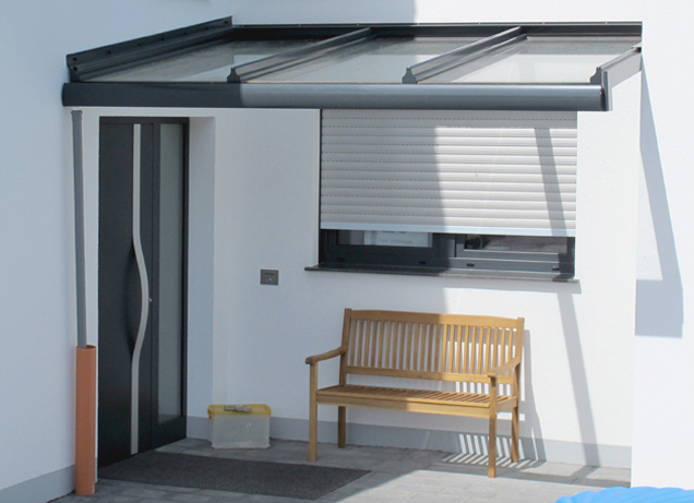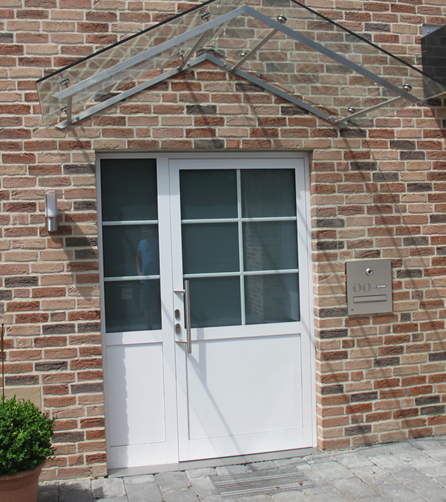 Haustürdach aus Glas und Unterkonstruktion Edelstahl
