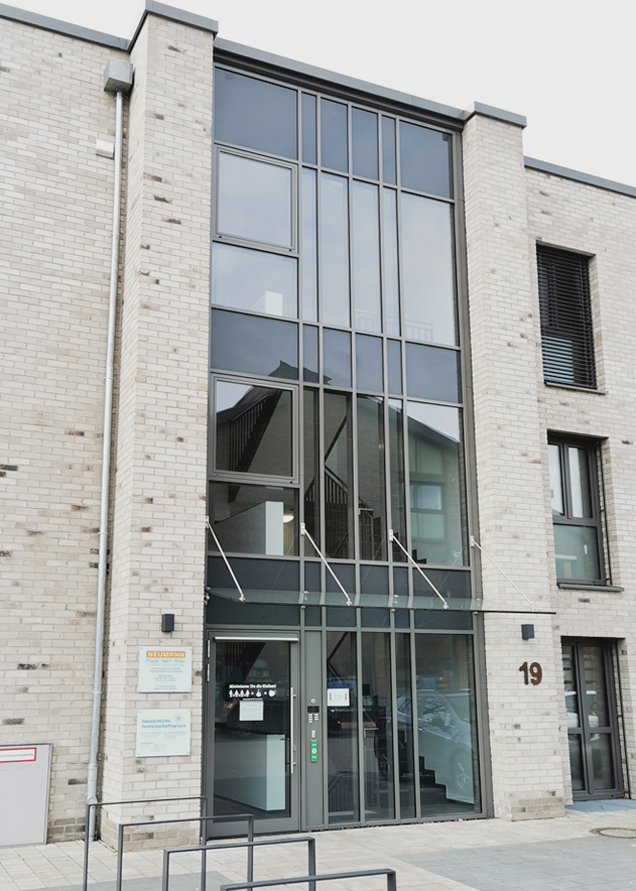 Fassade mit Glasvordach - Ärztehaus