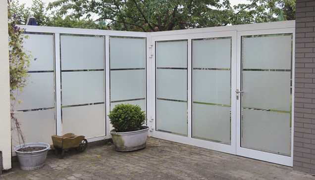 Haustür mit Seitenteil Aluminium weiß, mit Sprossen, Füllung Glas ung Paneel