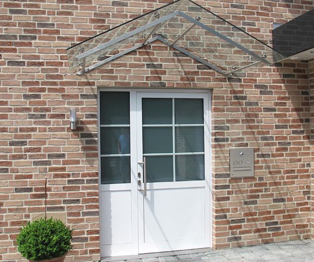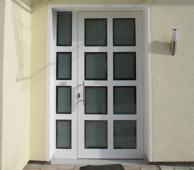 Haustür mit Seitenteil Aluminium weiß, glasteilende Sprossen