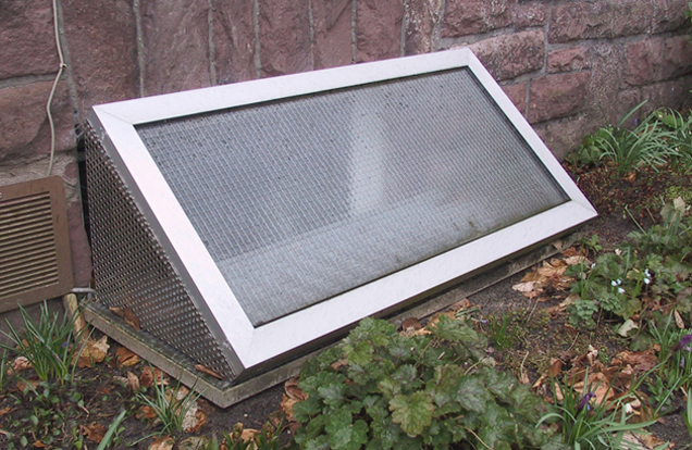 Fensterband Aluminium silber, mit farbig gestalteten Glaspaneelen