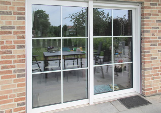 Hebe-Schiebetür Aluminium weiß mit Sprossen